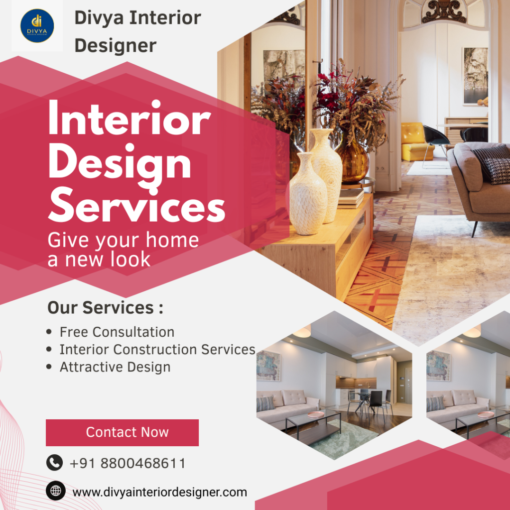 Divya Interior Designer ensures every project blends aesthetics, functionality, and sustainability. Call πŸ“ž +91-8800468611 to schedule a consultation.